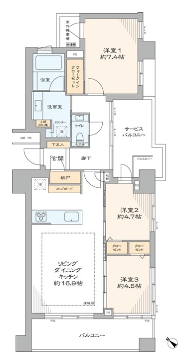 東京メトロ日比谷線・都営大江戸線『六本木』駅徒歩11分 - 間取り : 3LDK+WIC・収納