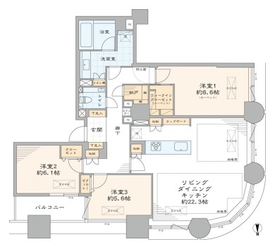 東京メトロ日比谷線『八丁堀』駅徒歩10分 - 間取り : 3LDK+納戸・WIC