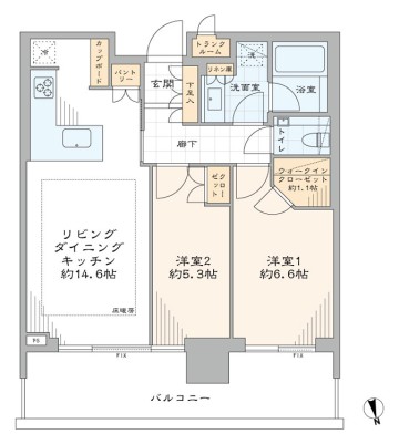 JR山手線・他『新橋』駅徒歩12分 - 間取り : 2LDK+WIC・TR