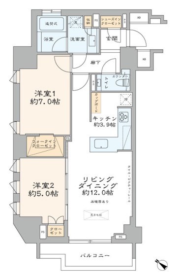 東京メトロ半蔵門線・東京メトロ有楽町線・東京メトロ南北線 『永田町』駅徒歩7分 - 間取り : 2LDK+WIC・SIC