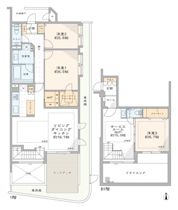 - バルコニー面積22.77 ㎡