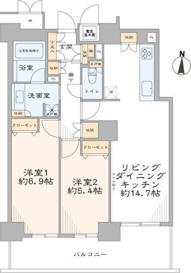 JR東海道本線『西宮』駅徒歩14分 - 間取り : 2LDK
